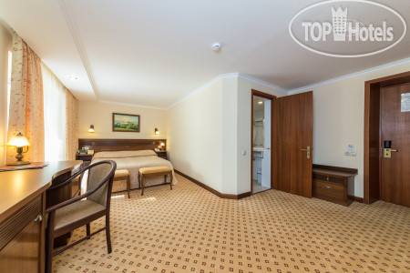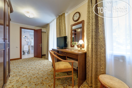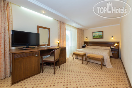 Хорошие процедуры (ванны, грязи, как заявлено), великолепный спа-комплекс с разными видами бань, бассейном-джакузи, спортзал. Отличный бассейн под открытым небом. Не очень большая территория санатория, зато большая зона парковки. Есть детская площадка, теннисный корт. Вкусные кислородные коктейли и полезные чаи. Отдельные чаепития по вечерам со сладушками. Хороший ресторан - шведский стол, питание неплохое для санатория. Но есть несколько блюд, фрукты, салаты. Раньше было спиртное, сейчас уже нет.