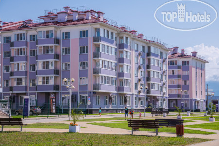 Отель расположен в самом центре олимпийских объектов, рядом набережная и пляж, летом это очень хороший вариант для размещения так как рядом море, буквально 500 метров. Много разных кафе и ресторанов поблизости.