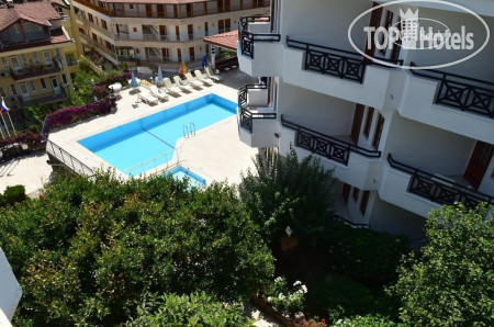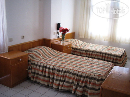 Прежде всего - это 2 звезды, включены, о счастье, только завтраки. Улица кварталом ниже -Бульвар Ататюрка предлагает массу мест для обеда. Каждый день-разнообразие. Мы жили в апартаментах. В номере с названием апартаменты есть: кондиционер, холодильник, чайник, тв, душ с горячей водой, сан узел. Тв барахлило, но нам не нужно это чудо. В обычных комнатах нет холодильника и чайника. У нас же в апартаментах- 2 комнаты, огромный балкон, электроплитка, чайник, посуда, уборка каждый день, смена белья -за 8 дней была 1 раз, но мы более не просили сами, хотя персонал был готов к смене ,белья.
