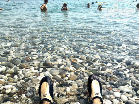 Утром пошел на пляж Мунлайт Бич. Весь это пляж оказался поделен между гостиницами. Пошел в один из проходов, там стоит парень турок. Спрашиваю можно пройти? Подходит второй парень и спрашивает из какой я гостиницы. Говорю Naturella. У нее есть пляж? - спрашивает. Говорю нет пляжа. Тогда проход 100 лир, говорит турок. Отвечаю что-то дороговато, нельзя подешевле? Говорит иди на городской пляж там 10 лир. Дошел до городского пляжа, купил билет на лежак за 10 лир, хорошо поплавал. Как сказал один отдыхающий утонуть здесь невозможно, так хорошо держит вода.