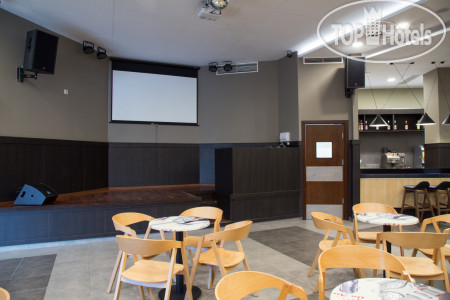 Ресторан просторный. Всегда были свободные места и внутри и на открытой террассе. Меню очень разнообразное. Уйти голодным точно невозможно. Минимум два вида мяса (бывало и больше), птица (в основном курица, но давали также утку и индюка), рыба(была всегда, но только одно блюдо).  Большой выбор гарниров - картофель(и вареный, и печеный, и жаренный), вареные овощи, паста, много сырых овощей, различные салаты.