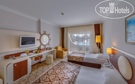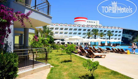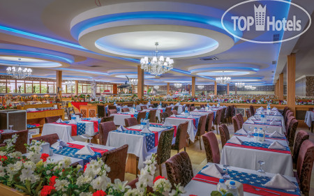 Начнем с питание, то что главнее думаю. Еды много, она пополняется , но не все блюда. Еда однообразная, не то что без изысков, а сплошная курица с индейкой. Первые три дня почти все пересолено, а остальные все сухое и пережареное. Начну с супчиков, их было два вида каждый день, без вкусные, что пробовала именно я. Фрукты разные, но жетские и не сладкие. Выбор десертов вроде бы есть, но по сути если положить на один кусочек мяту, а на другой клубнику это все разнообразие... Столик с колбасами, рулетами и сырами есть, и блюд много , но опять-таки они повторяются. Из рулетов можно ещё кое что выбрать, а из колбас уже нет. На столе гарниров и тушения , я выбирала постоянно рис. Остальные блюда либо безвкусные, или приправленные сильно. Тут мне было сложнее. С завтраком обходилась только омлетом запеченным, каши могу сказать никакие... Перейдем к мясным блюдам. Это нагенсы( довольно не плохие), котлеты не сочные и часто горелые, два раза была печень мне она понравилась, пару раз был шашлык из курицы тоже неплохой, если куриные крылья или бедро то их кожура не обработанная. Сердечки жёсткие, люля раз на раз не приходится, растрёпанные жареное мясо индейки в перемешку с кожейцей, рыба морская костлявая каждый день, и три раза за две недели были стейки с красной рыбой, вот тут очередь была огромной. Пару раз видела кальмаров и суши, но понравилось не все. В общем питание хромает сильно, мы на третий день ходили просто утолить голод. Обеды пропускали или ходили не в главный ресторан, а в снек-бар на территории сада брали гёзмеле или пиццу. По напиткам, их разливают в пластиковые стаканы. Алкоголь льётся рекой, мимо бокалов... Импорта мало, а в последнюю неделю нашего отдыха после того как многое из ассортимента закончилось завезли не очень хорошего качества. Но хочу заметить, что особенно важно отравлений и головных болей ( от еды и алкоголя) за это время мы не получили, и это уже плюс!