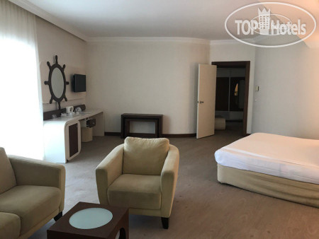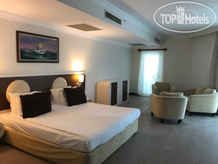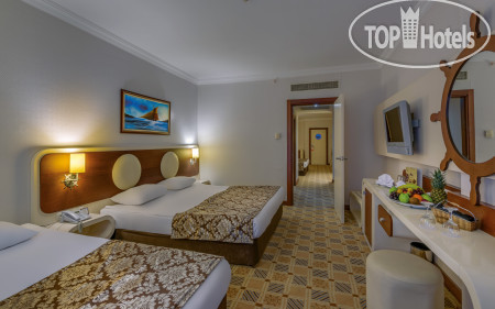 Отдыхали в середине октября. Бюджетная "пятерка", особых ожиданий от отеля не было, но все-таки взяла с собой рекомендательное письмо с TopHotels. Рейс Corendon ночной, задержка была на 6 часов по причине закрытого неба. Уставшие прибыли в отель, на ресепшн встретили очень радушно, приняли рекомендательное письмо, без всяких доплат заселили в номер на 4 этаже с потрясающим видом на горы. В номере нас ждала бутылка вина и фрукты. Было очень приятно.