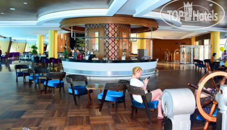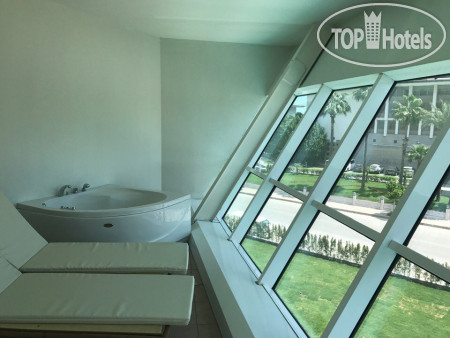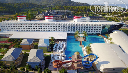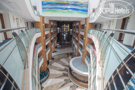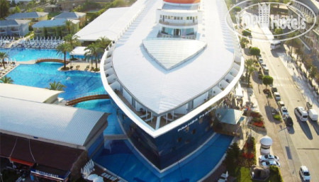 Сам отель уставший, но все чисто, все работает. Очень красивый вид из панорамных лифтов. На первом этаже в носу "корабля" можно покрутить штурвал, детям нравится. WiFi работает по всей территории, но в часы перегруженности может отвалиться. Бассейны - детский лягушатник, взрослый большой, глубиной 1,6м(или 1,4м, не помню) и при водных горах глубиной 1,2м. В октябре конечно хотелось бы бассейн с подогревом. На -1 этаже есть бильярд, приличные детские "лазилки", игровые автоматы, боулинг, крытый бассейн (если холодно) и сауна. Есть так же спортзал, маленький, размяться можно. Отель больше подходит для семейного отдыха, спокойного, если хотите ночной жизни, то возможно вам он не подойдет.