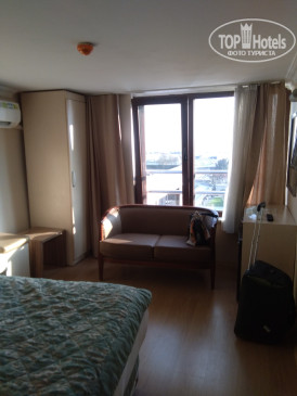 Номер брали самый бюджетный, с одной большой кроватью. Номер очень компактный, чемодан под стол не помещается, сидеть или на кровати, или на маленьком пуфике. Есть шкаф, холодильник, 2 зеркала, не считая того, что в ванной комнате. Мебель средней степени изношенности, жить вполне можно. Чайника в номере нет. Чай вечером пили в кафе или в Макдональдсе. Хотя можно было и в номер заказать. Сколько стоит - не знаю. Уборка в номере была каждый день.