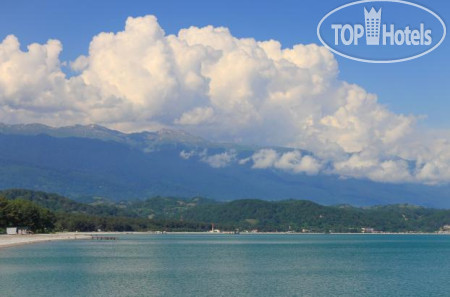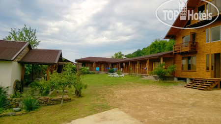 Располагается отель на берегу моря, в сосновом лесу вдали от туристических улиц и развлечений. Мы наслаждались природой Абхазии не только, путешествуя по этой стране, но и просто выходя из домика, где жили.