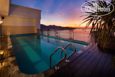 Территория отелянебольшая, но уютная. Есть бассейн на крыше с потрясающим видом на город и море.