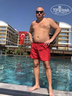 Отдыхали тут с 15 по 24 октября с мужем . Есть ЗНАЧИТЕЛЬНЫЕ минусы . Это алкоголь - турагенты вам заявляют импортный алкоголь «рекой льется» , но по факту тут постоянно все быстро заканчивается 🥲 под вечер ни пива вам , ни виски , ни Бейлиса , ни даже обычного мохито . В Лобби баре наливают хороший алкоголь и вкусные коктейли , но он работает до 12 ночи и бармены отправляют вас в снэк бар или приотельный ночной клуб в котором ужасный алкоголь . Еда вкусная и разнообразная в основном на ужин ( морепродукты , шашлык из баранины , креветки) , народу полно и иногда не хватает столиков , обед скудный . Уборка отеля на троечку : полы протирают сухой шваброй , постели не заправляют , а просто складывают одеяло на краю кровати , бар пополняют не всегда . Аниматорам большой респект , развлекают как могут , Zeki крутой , зазывают на шоу . Через день пенные вечеринки в бассейне . Вечером каждый день идут какие-то шоу или же тусовки . Ночью собирают народ в ночной клуб в городе , билет 15$ . Если вы любители рано ложится спать и топить до обеда - этот отель не для вас ! Музыка орет до 12 ночи + пьяные гости поют и слушают свою музыку прям под окнами . От музыки в приотельном клубе до 2 ночи идёт вибрация в номерах аж до 3 этажа) на территории отеля не хватает освещения , местами ночью очень темно . На пляж либо шагаешь ножками минут 15 , либо едешь на автобусе ( ходит каждые 20 минут). последний автобус забирает в 18:00 , то есть ночью на пляже особо не посидишь) бар тоже закрывается там в 18:00 . Мусорок на пляже тоже особо нет , мороженное быстро заканчивается . Музыка в клубе отеля на -2 этаже играет такая себе )) сам отель выглядит уже потасканно , учитывая тому , что ему только 4 года ! Единственный ОГРОМНЫЙ + , что нет детей 🤪