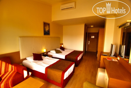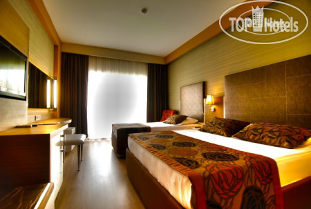 Номер просторный, балкон большой, вид с балкона прекрасный ,туалетные принадлежности все есть, чайник есть и к нему всё прилагается. Сладкая вода по приезду, потом только обычная вода 1,5 л. От корпуса D до моря ровно 5 минут. На пляже в 9-00 утра свободных мест много, море чистое, единственный минус -это в море огромные камни, иногда когда плаваешь об них задеваешь. Но если брать левее в сторону отеля Лонесера то там и волны меньше и камней нет. На пляже бар( с 12-16 обед) можно не ходить в отель и полноценно пообедать на пляже( рыба жареная, куриная грудка жареная, гамбургер, салаты) из напитков вода, сок разные и пиво. В отели много бассейнов, с лежаками беда, в нашем корпусе всегда можно найти место было, а в главном с большим бассейном даже в 7-00 утра уже не было места свободного. По питанию все очень хорошо, много фруктов, овощей, закусок, мясо разное, рыба в разных видах, на рыбный ужин там вообще обжорство ( форель, тунец, креветки, крабы, раки, мидии и.т.д.) Есть 2 снек бара , первый где аквапарк и там же пекут лепешки гюзлеме и мороженое, 2 бар в корпусе D. Каждый вечер разная анимация. Вторник музыкальный вечер в корпусе D у бассейна( мы вечером с балкона смотрели - нам повезло!) в пятницу живая музыка возле бара 24 часа который, рядом аквапарк. Но все эти шоу до 23-00. Дискотека в отеле не проходит, есть выездная, мы не ездили. В целом отель очень понравился, мы с удовольствием вернемся еще раз сюда.