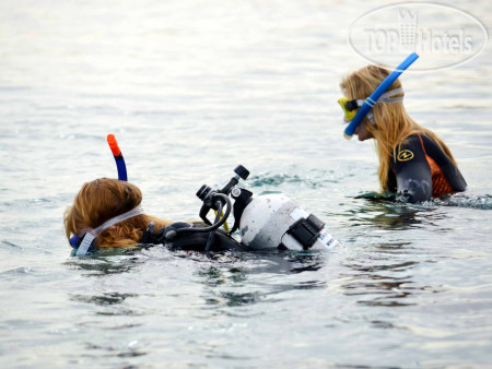 Пляж отеля — песчаный, чистый, с пологим входом в воду. Для детей идеально: можно безопасно купаться и строить замки из песка. Для взрослых — отличный снорклинг: рядом риф с разноцветными рыбками. Лежаки и зонтики бесплатные, полотенца выдают на пляже.