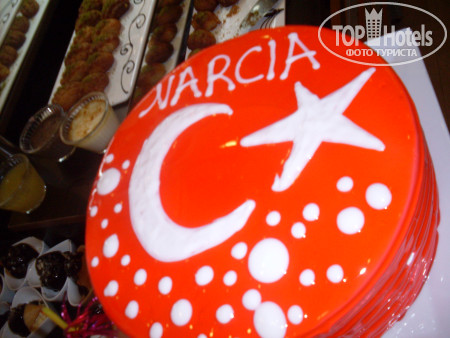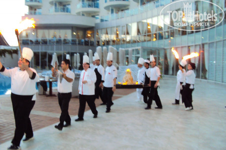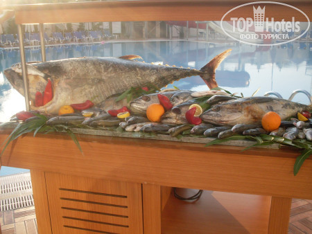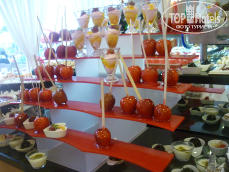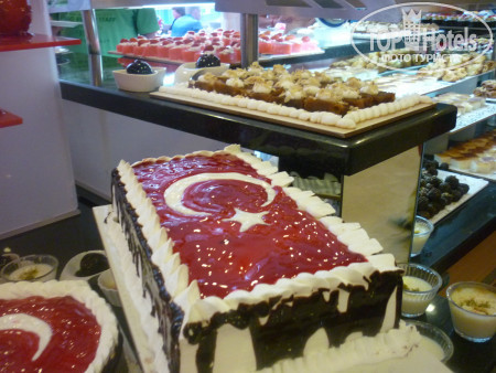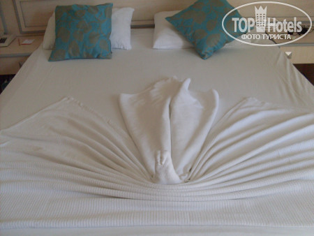 Отель очень понравился.Заселили в 11 утра,вид шикарный на море ,5 этаж,нужно немного положить американских рублей в паспорт и заселение происходит быстро, браслет надели сразу.Еда шикарная :супы(минимум два вида,сыры сортов 7-10,овощи,курица,говядина,индейка,телятина,баранина, говядина,котлеты,рыба,гарниры разные от риса до пюре,сладостей куча,тортики,пирожинки итд,фрукты , апельсины, мандарины,бананы,груши, яблоки (красные,зелёные, жёлтые)виноград белый, темный,дыня, арбуз,мед в сотах и разовых упаковках.Коктейли в лобби суперские,пиво норм,алкоголь хороший,пить можно,дают талончики на кофе Старбакс, очень вкусное ,мне с карамелью понравилось, мороженое шесть сортов :ваниль,лимон, клубника,фисташка,карамель, шоколадом,бар на пляже поразил куриными крылышками и гезлиме,лежаки надо занимать,но иногда места есть,бассейнов 4,один из них крытый ,горки в детском шикарные,в основном бассейне две ,анимация хорошая ,каждый день приглашают артистов ,от танцоров самодеятельности до современных музыкантов,на территории есть детская площадка и детские маленькие карусельки.До пляжа ходит небольшой автобусе,но дойти можно за 5 мин,рядом есть рыночки ,магазин а 101 и карефур,номера убирают каждый день,отдых очень понравился, огромное спасибо за это администрации,поворам,барменам,уборщицам и аниматорам!!!!