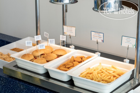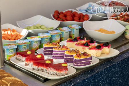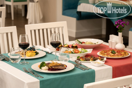 Ресторан: В ресторане выполнен свежий ремонт, персонал бегает, убирают быстро, приносят напитки, но если вы приходите через полчаса после открытия, то свободный стол вы будете искать, бывает что нужно ходить с тарелками по 5минут чтобы его найти. По питанию особых замечаний нет, соки пакетированные, мороженое практически круглые сутки, гриль: белая рыба, индейка, люля, пару дней была баранина, говядина. Десертов мало, сладкоежки будут расстроены, в пятерках настолько скудного выбора еще не встречали. Так называемый рыбный день, это просто смех: блюда под выдачу с тремя переваренными креветками и ролы без рыбы, на этом всё, ни красной рыбы, ни кальмаров, мидий, раков, крабов, тут вы этого не увидите. Алкоголь как и практически во всей Турции не пригоден для употребления, коктейли все с привкусом спирта, но это стандартная история, импортный алкоголь так же далеко не надлежащего качества, пиво только на разлив.