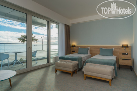 Очень рекомендую этот отель, особенно корпус Лето, первая береговая линия,уютный и чистый номер,завтрак-шведский стол, что очень понравилось и кашки были и на бутерброд. На любой вкус. Погода подвела конечно,но СПА с двумя бассейнами компенсировал море. Хотелось бы выделить администратора Анастасию,человек на своём месте- очень добрая,отзывчивая с отличным чувством юмора. Приедем ещё. Спасибо
