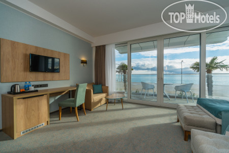 Отдыхали в отеле по многочисленным рекомендациям знакомых, прекрасное расположение: первая линия, вид на море из комплекса «Лето», променад по Приморскому пляжу в центр, хороший спа-комплекс с бассейном. С парковкой пришлось потрудиться, количество мест ограничено, приходится располагать подальше авто. Не слишком очевидна навигация по комплексу. В комплексе «Лето» новый ремонт, имеется лифт, вежливый персонал. Нлмер категории «Делюкс» довольно просторный, великолепный вид на море, балкон с мебелью, ТВ, холодильник, кондиционер, фен, чайник, чайный набор, вода по 0,5л, косметика, тапочки.Большой спа-комплекс с разнообразными парными, крытым и открытым бассейном. В летнее время работают спасатели на пляже, пляж благоустроенный лежаками, зонтами и полотенцами для гостей отеля. В качестве презента имениннику дарят бутылку шампанского. Завтраки проходят в ресторане «Фабрикант» по системе «шведская линия», разнообразный выбор блюд и напитков. Столики как внутри, так и на веранде, утопающий в зелени с красивым видом на море. Территория отеля хорошо благоустроена, разные виды растений и деревьев, из отеля напрямую можно выйти на набережную и в Приморский парк. В отеле круглый год действуют скидки при бронировании через сайт отеля. Рекомендую отель для отдыха!