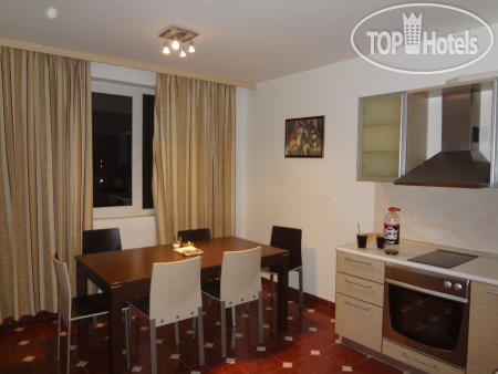 Были в этом отеле в 2013 году с конца июля по начало августа. Поехали с друзьями. Выбирали апартаменты на Букинге. Все фото соответствуют заявленным. Апартаменты большие, чистые, светлые, с хорошей мебелью. Состояли из 2х спален с 2мя балконами и гостиной с кухонным уголком. В гостиной помимо кухни был диван, обеденный стол, телевизор. СУ совмещен. Единственное, что было неудобно - душ. Когда мы искали апартаменты, большинство из них предлагались как здесь, просто со сливом в кафеле. Как ни пытались найти адекватные по цене с нормальной душевой кабиной, либо уже всё занято, либо очень дорого. Кухня отличная. Было всё: посуда всевозможная, принадлежности и пр. Мы в апартаментах только завтракали, поэтому амлет, салат, кашу, горячие бутерброды в духовке и т.д. могли сделать без проблем. Обедали и ужинали во всевозможных ресторанчиках. Цена-качество оптимальные. Уборка хорошая, один раз не успели помыть посуду, убежали на пляж. Приходим, всё чисто. Даже удивились.