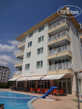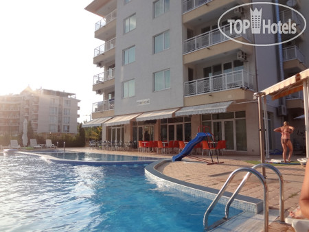 Идея поехать в Болгарию родилась ещё весной, но как-то особо не развивалась. В июне выяснили все нюансы по поводу всех своих отпусков и решили вчетвером (двумя семьями) скататься в Болгарию. Данный отель выбрали в системе BOOKING. По описанию отель соответствовал всем нашим критериям. Прилетели в Бургас в 20-15 по местному времени. В отель отправляли запрос на трансфер, Но!!! Никто от отеля нас в аэропорту не встретил. Возле выхода из терминала прибытия скопилось множество встречающих и таксистов. Повезло, что попался мужчина хорошо говорящий по-русски. Он нам объяснил, куда ехать и как, и примерные цены на такси. Пока искали такси, стемнело. Повезло, что мы нашли молодого таксиста по имени Боби, за 60 левов он нас доставил прямо до отеля. При заселении выяснилось, что оплата за проживание только наличкой, хотя в интернете утверждали, что расплатиться можно и картой. В итоге за проживание пришлось слегка переплатить, так как комиссия в местных банкоматах (рекомендуем Альфа-Банк) от 1,5 % за сумму. На ресепшене нас встретила молодая девушка, которая на русском только здороваться умела, но тем не менее заселение заняло не боле 10 минут. Позже выяснилось, что другие работники отеля, почти все, пусть не совсем, но владели русским языком.